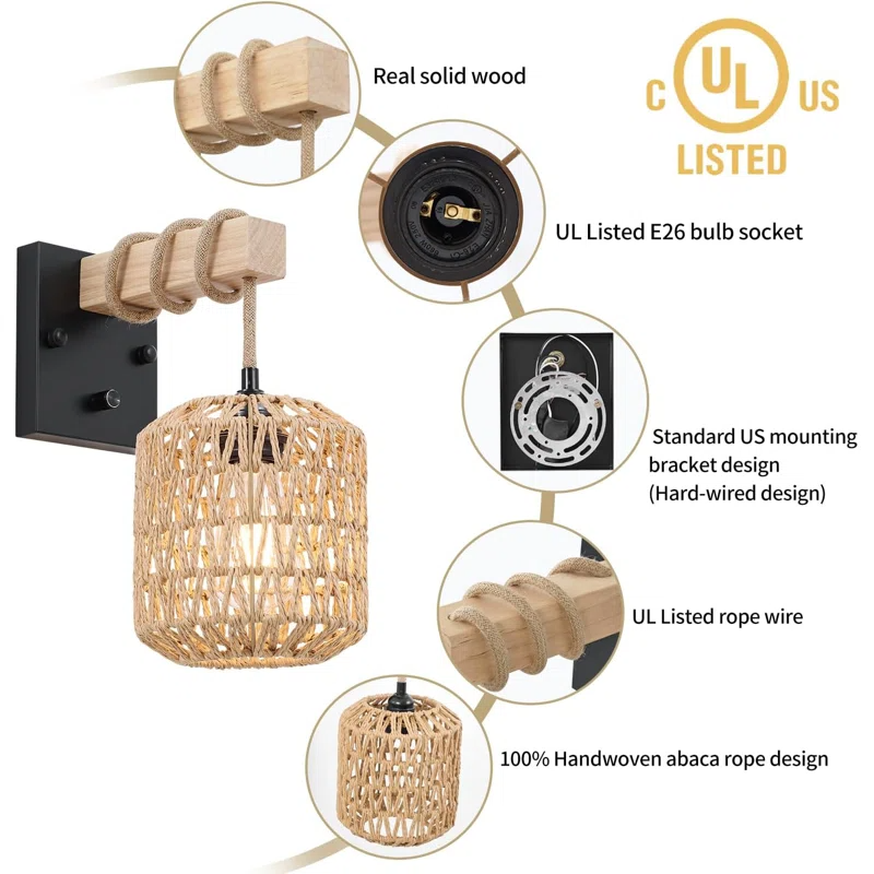 โคมไฟติดผนังหวายพร้อมลวดแขวน