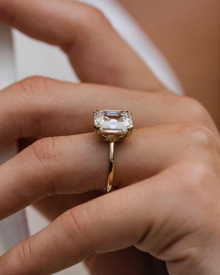 Ravishing 14K สีเหลืองทอง Asscher ตัดแหวนโซลิแทร์ห้องปฏิบัติการปลูกเพชรที่มีความชัดเจน VVS แฟนซี Def เครื่องประดับที่สง่างามผู้หญิง