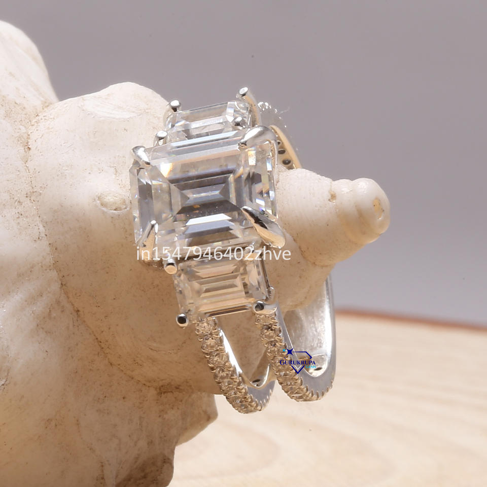 แหวนโซลิแทร์ทองคำขาวประดับเพชรที่เจียระไนแบบกลมสีขาว14kt พร้อมความคมชัดระดับ VVS มรกตสำหรับงานแต่งงานหรือปาร์ตี้
