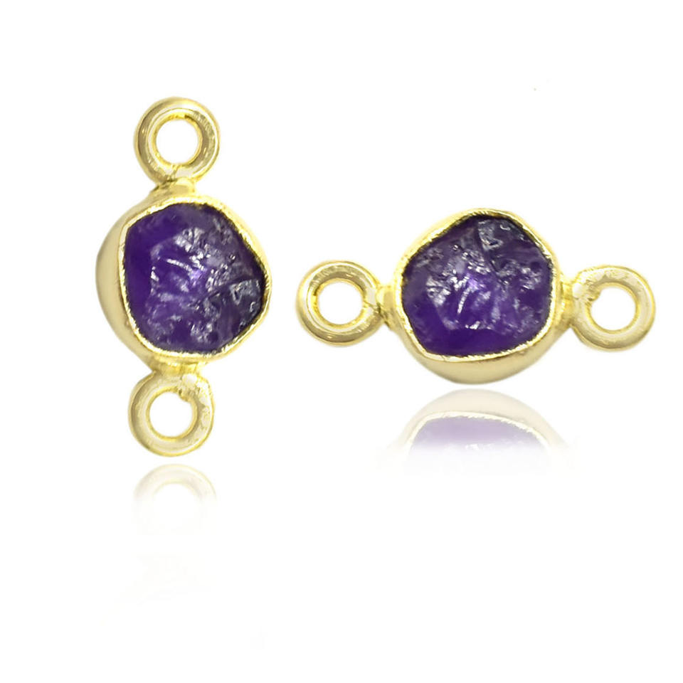 ตัวเชื่อมต่อพลอยอเมทิสต์ดิบ-คริสตัลธรรมชาติ6-8มม. ลิงก์เครื่องประดับอัญมณีแบบประกันตัวคู่ขั้วต่อเครื่องประดับแฮนด์เมด