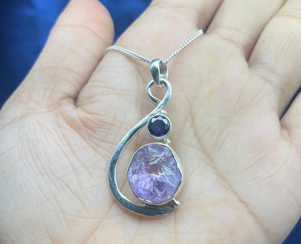 จี้เงินอเมทิสต์ดิบจี้พลอยโกเมนแบบหยาบจี้เงินสเตอร์ลิง925สำหรับผู้หญิงจี้เงินสไตล์โบโฮ
