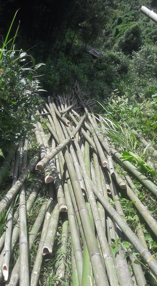 เสาไม้ไผ่ดิบตรงจากป่าที่ปลูก