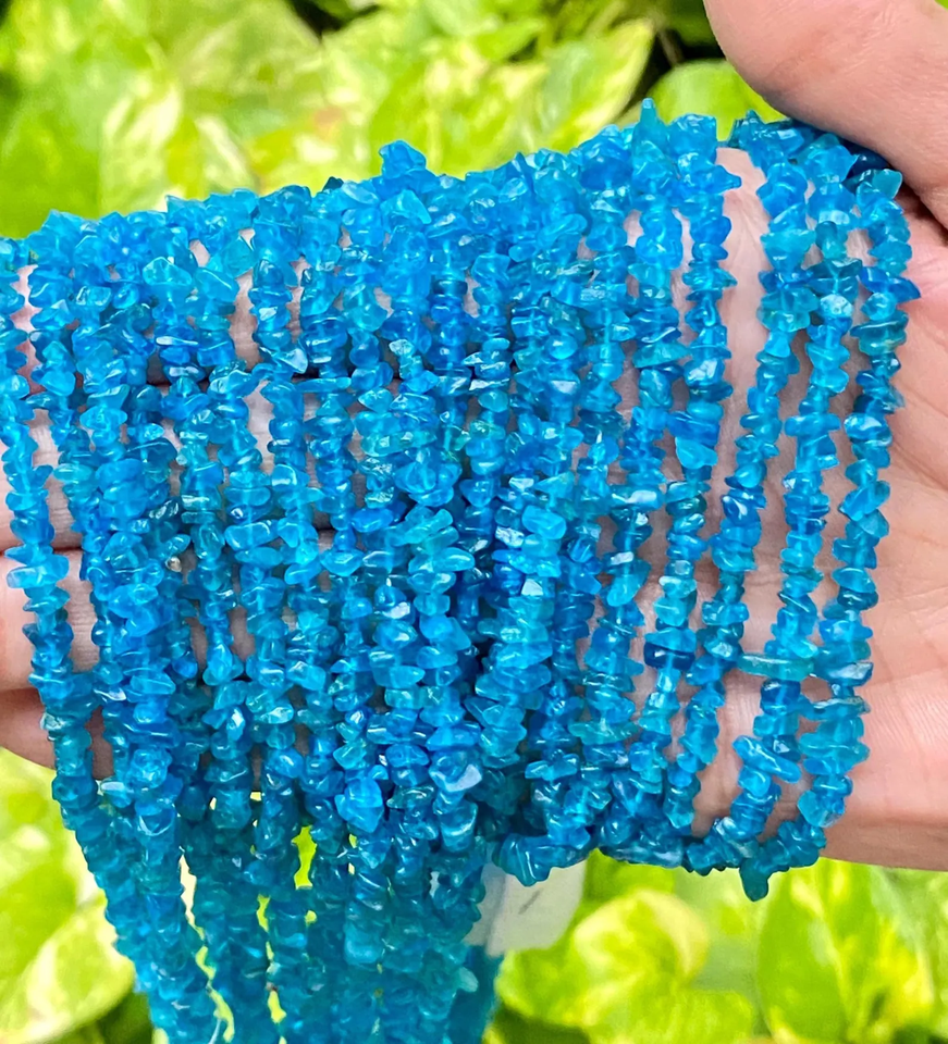 อะพาไทต์สีฟ้าดิบวัสดุลูกปัดหลวม