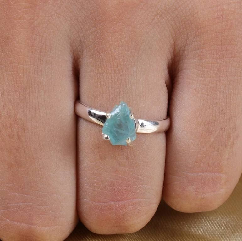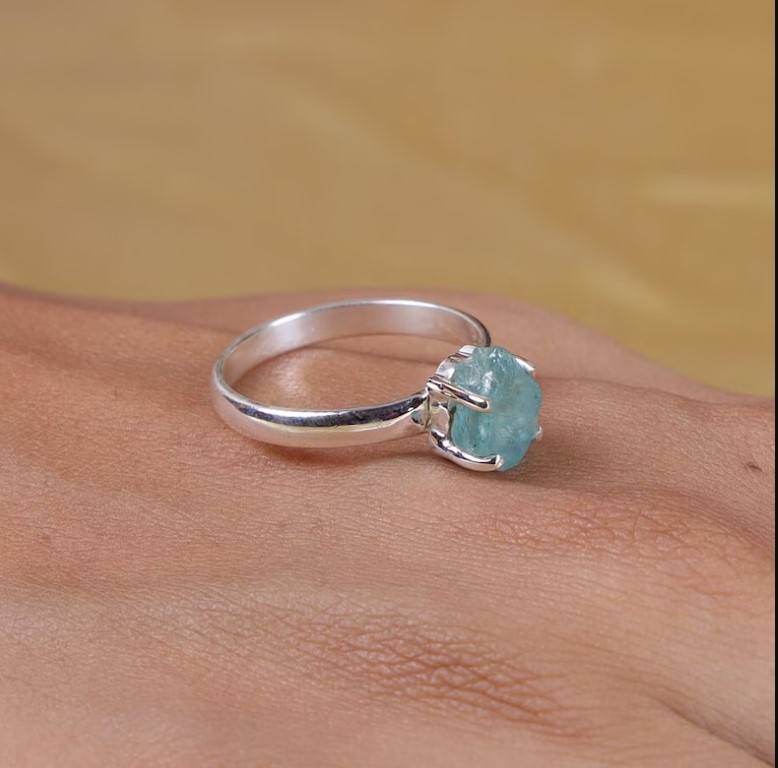 แหวนอะความารีนสีน้ําเงินดิบ แหวนพลอยอะความารีนดิบ แหวนเงินแท้ 925 ขายส่งแท่นเครื่องประดับเงินสเตอร์ลิงสําหรับผู้หญิง