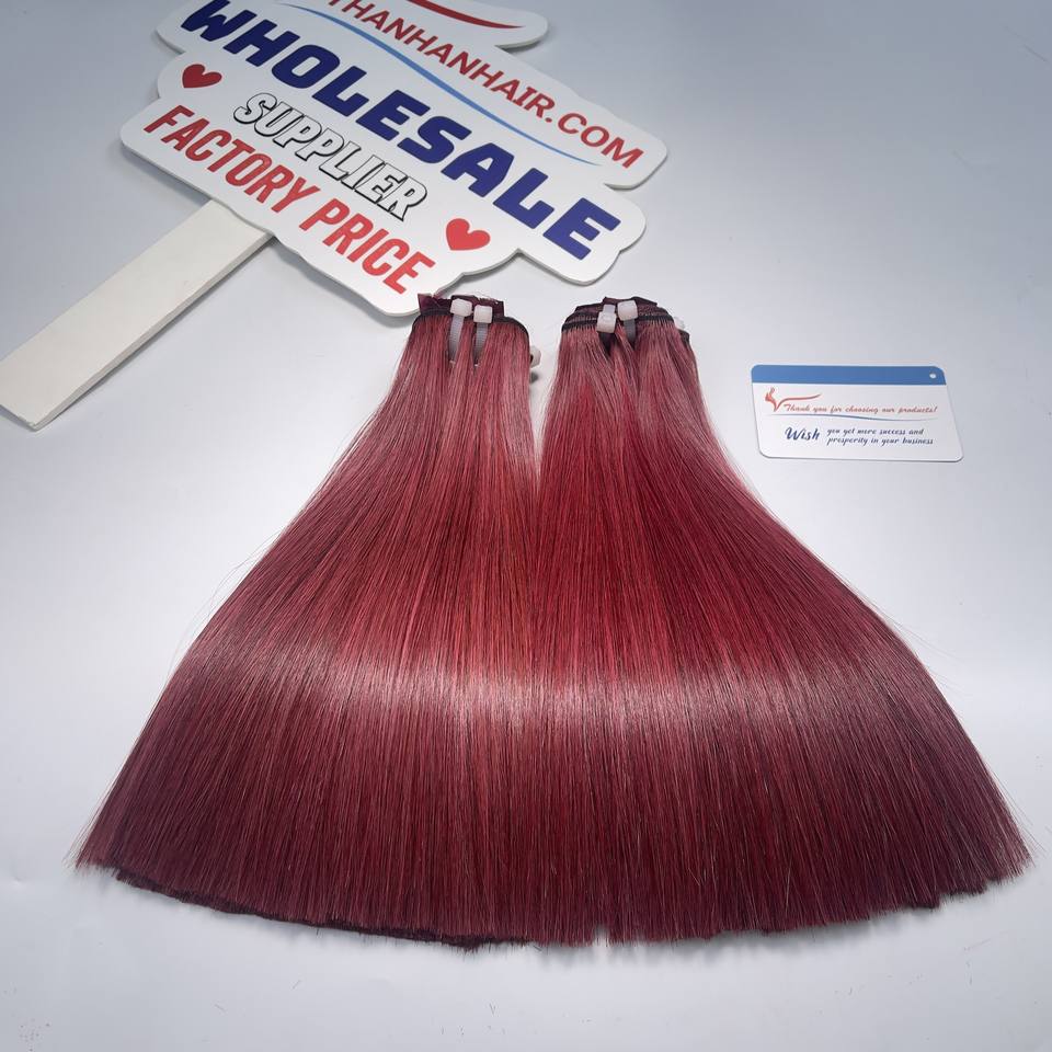 ผมดิบทรงตรงแบบดึงคู่สุดๆทำผมทำผมสีแดงยาว14นิ้ว