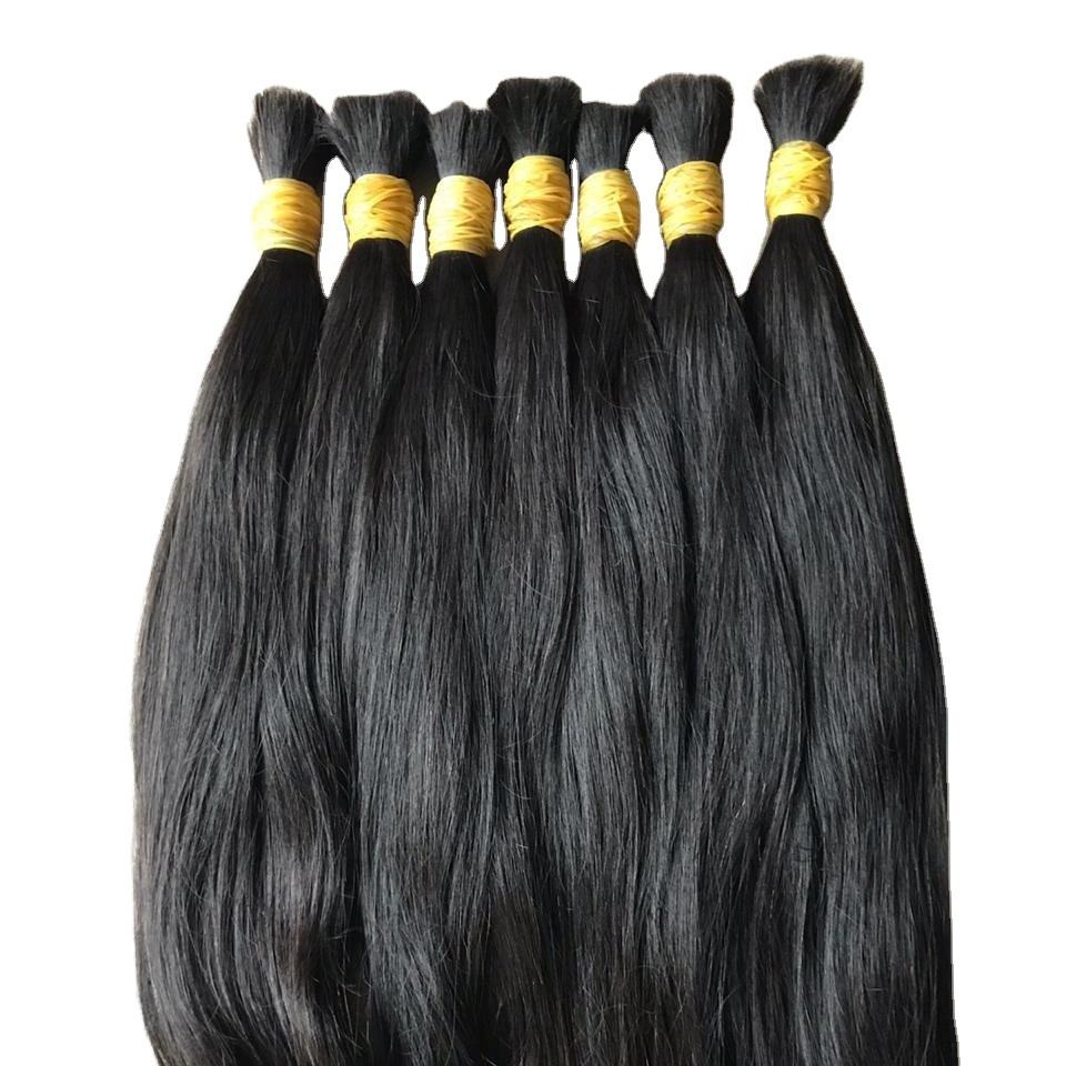 Raw Brazilian Human Hair Super Double Drawn Natural Black Bulk Hair Extensions Same Cuticle Aligned Hair