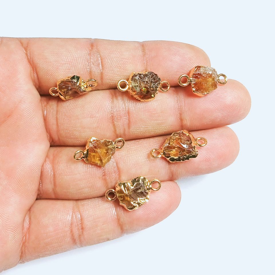 หินซิทรินดิบพลอยทอง/เงินอิเล็กโทรดหินอัญมณีประจำเดือนเกิดห่วงคู่ตัวเชื่อมต่อ M-37