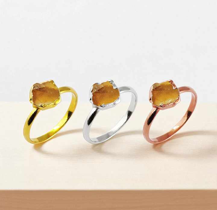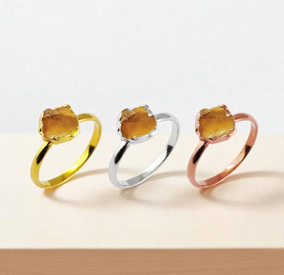 แหวนซิทรีนดิบขนาด8-10มม. 925ชุบทองเงินสำหรับผู้หญิงขายส่งแหวนซิทรินดิบ