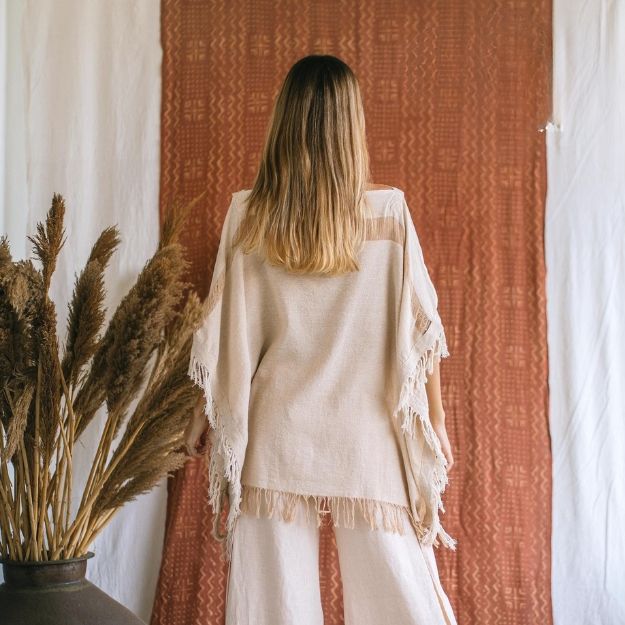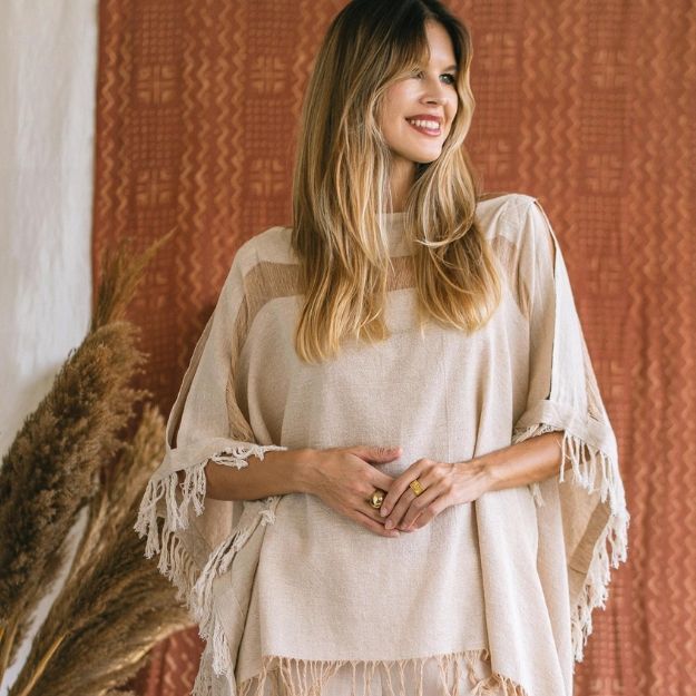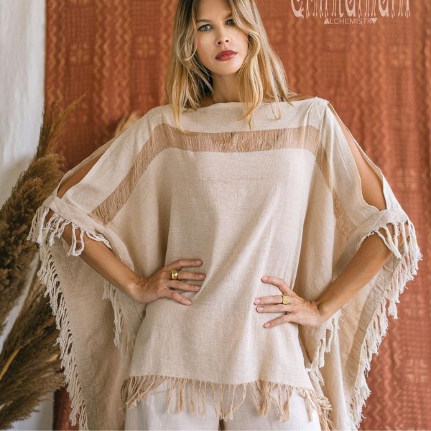 เสื้อปอนโชผ้าฝ้ายดิบสไตล์โบฮีเมียนสำหรับผู้ชายและผู้หญิง สไตล์ยิปซีฮิปปี้ เปิดไหล่ เสื้อคลุมสำหรับงานเทศกาล แต่งชายครุย เหมาะสำหรับงานปาร์ตี้และชุดไปเที่ยวชายหาด