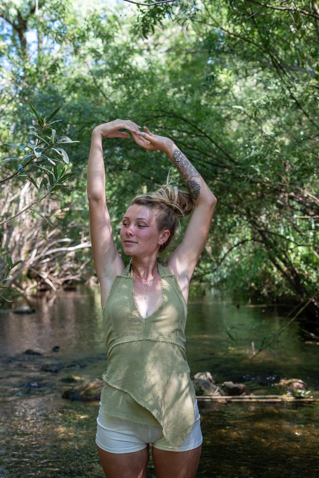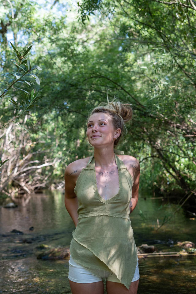 เสื้อครอปผูกคอผ้าฝ้ายดิบ เปิดหลัง สไตล์แฟรี่พิกซี่ โบโฮ เสื้อผ้าสำหรับงานเทศกาล ทำมือ สไตล์ชาติพันธุ์ ชุดฤดูร้อน