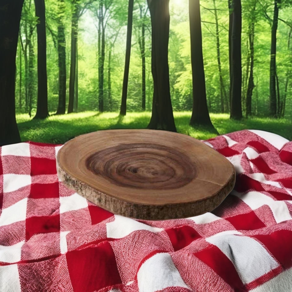 Raw Edge Natural Solid Wooden Cutting Board Wooden Meat & Fruits Cheese Board and Knives Set Customized Bark Wood Serving Board
