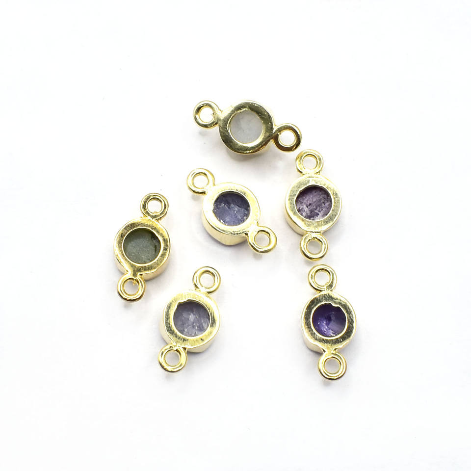 ตัวเชื่อมต่อพลอยมรกตดิบ-คริสตัลธรรมชาติ6-8มม. ลิงก์เครื่องประดับอัญมณีคู่ข้อต่อเครื่องประดับทำมือ