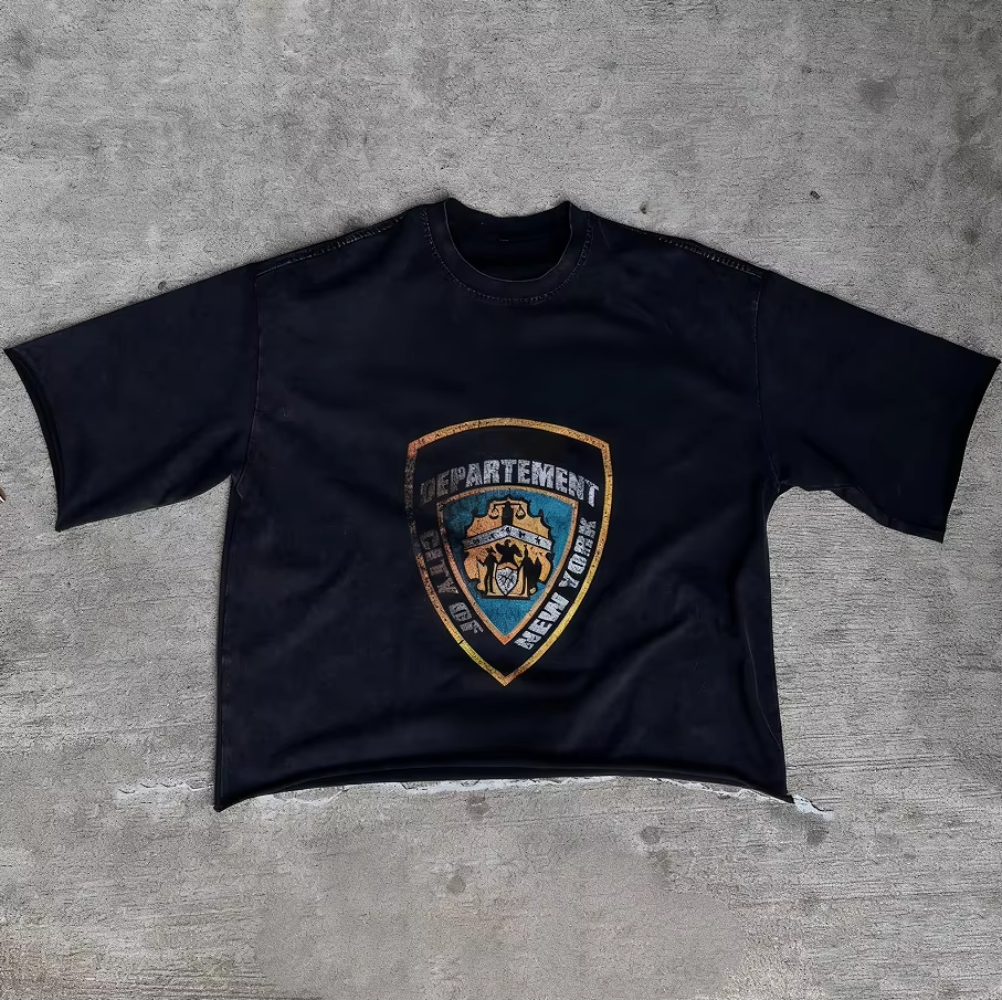 เสื้อยืดพิมพ์ลายขอบดิบ ตัดเย็บพิเศษ ผ้าเฟรนช์เทอร์รี่ ล้างสีแบบแอซิด พิมพ์ลายดิจิทัล