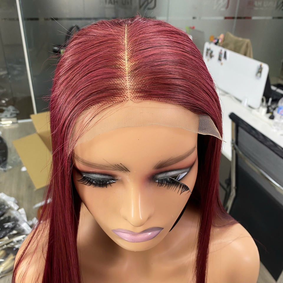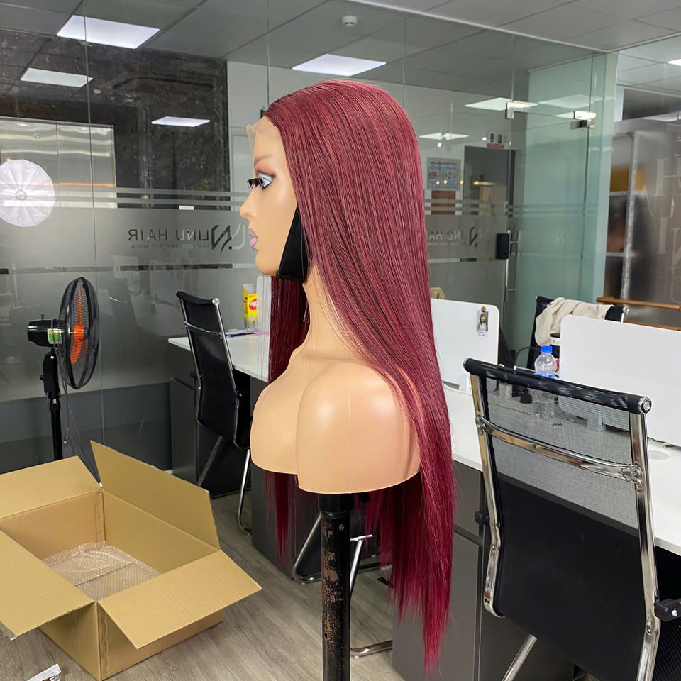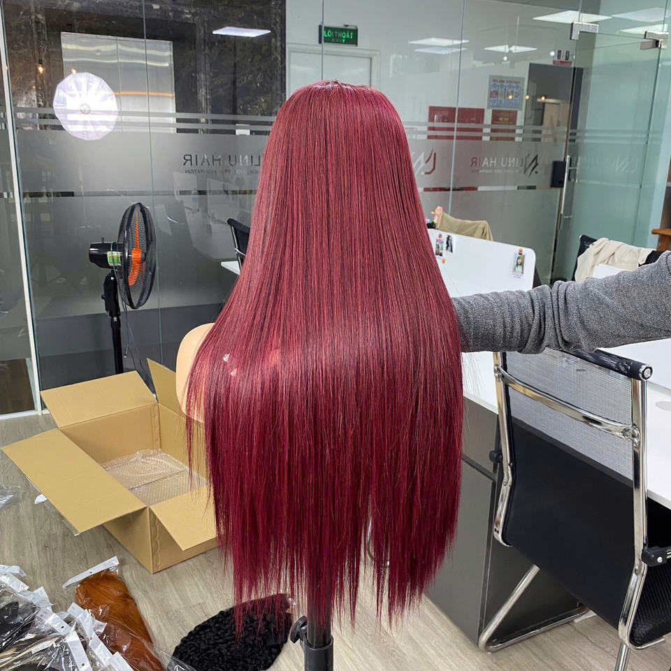 วิกผมแท้จากผมมนุษย์เวียดนาม คุณภาพสูง ซุปเปอร์ดับเบิ้ลดรอน ผมตรงแบบธรรมชาติ คุณภาพหรูหรา สีเบอร์กันดี