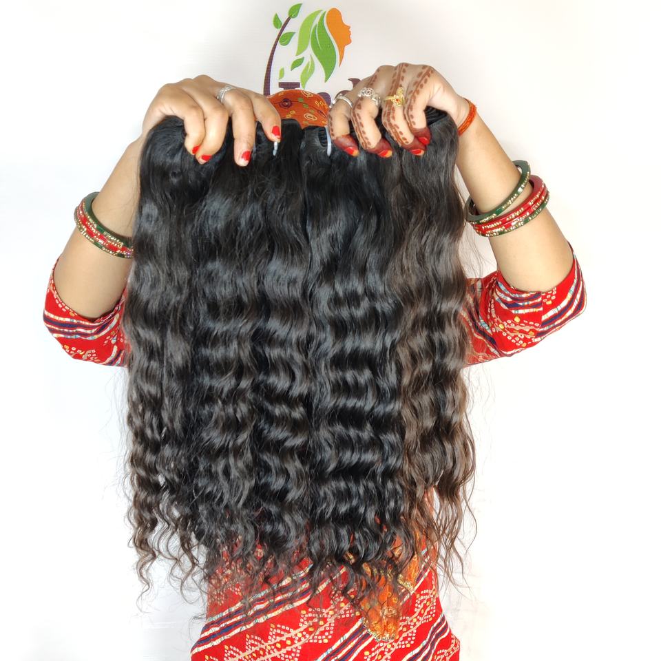 เรมี่อินเดียนอินเดียวิหารหนังกำพร้าผมธรรมชาติสีดำเป็นลอนไม่ผ่านกระบวนการทางเคมีไม่มีการถักทอแบบลึก