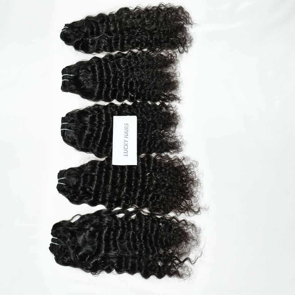 ผมต่อของมนุษย์ผมหยิกเป็นลอนแบบดิบหรูหราจาก100% ผมเวียดนามมัดผมสีดำ