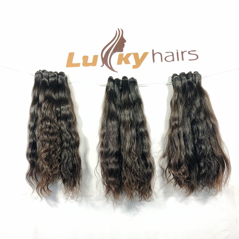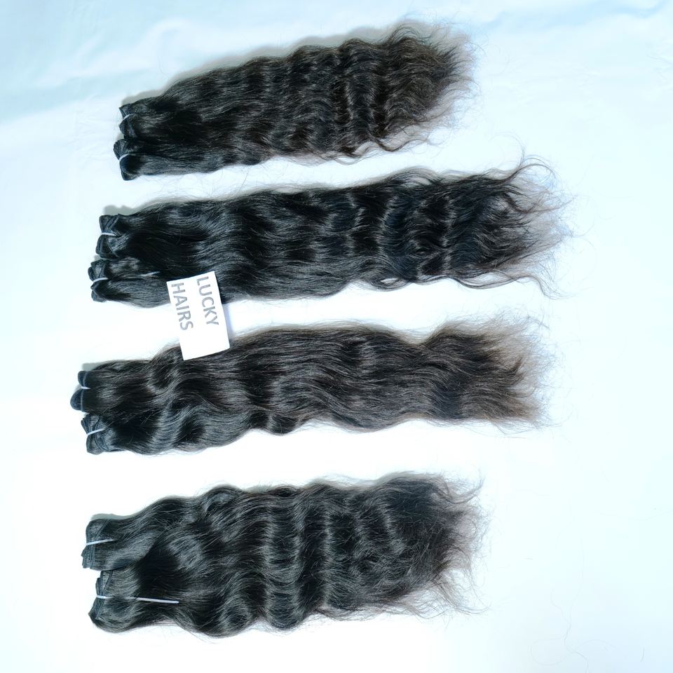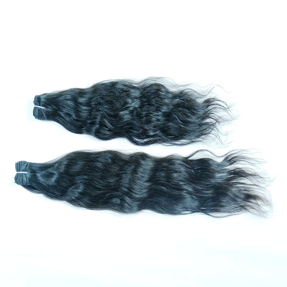 ผมต่อแบบดับเบิ้ลเวฟอินเดียแท้ เวอร์จิ้น เรมี่ ไม่ผ่านการแปรรูป สีดำธรรมชาติ แบบมัดเป็นช่อ