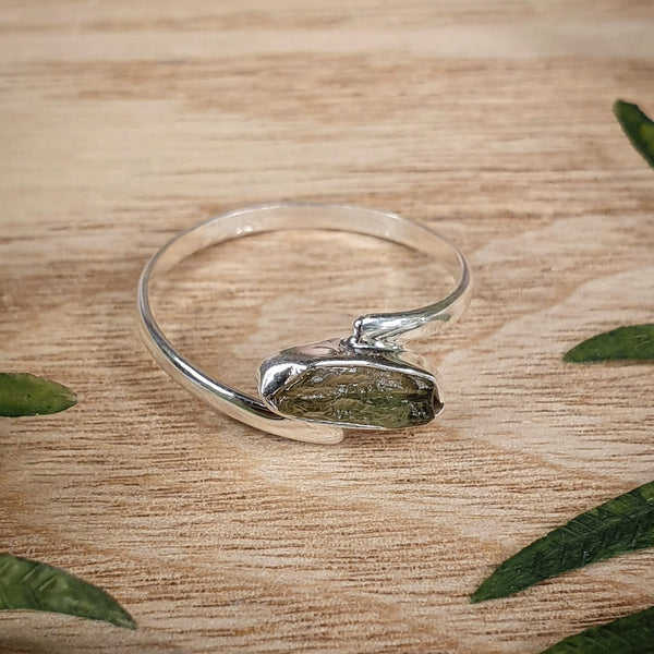 แหวน moldavite ดิบ, moldavite ดิบ, แหวนหินคำสั่ง, แหวนเงินสเตอร์ลิง, ของขวัญสำหรับเธอ, ของขวัญวันเกิด