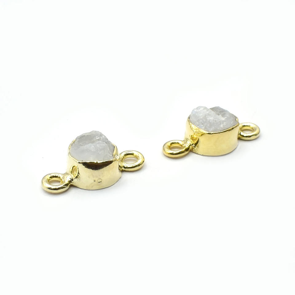 ตัวเชื่อมหินมูนสโตนแบบดิบขนาด6-8มม. คริสตัลอัญมณีธรรมชาติลิงก์เครื่องประดับ birthstone BAIL Link