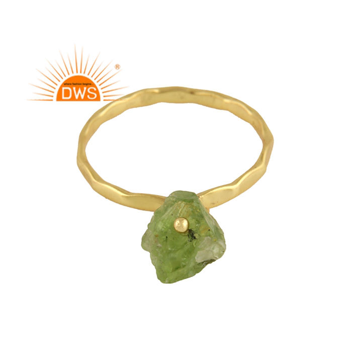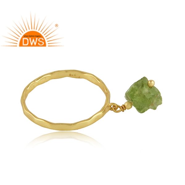 ดิบ Peridot แหวน Handmade Designer 18K Gold Plated 925แหวนเงินแฟชั่นเครื่องประดับผู้ผลิต