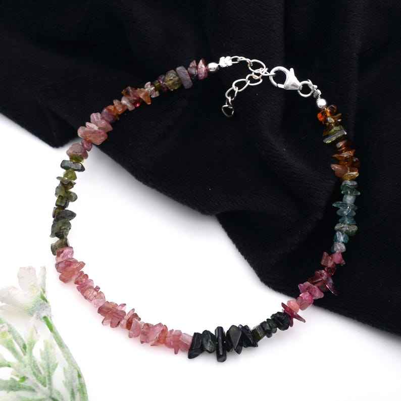 กำไลข้อมือลูกปัดทัวร์มาลีนหลายสีแบบหยาบธรรมชาติสำหรับเครื่องประดับทำมือไม่เหมือนใครและมีสไตล์ที่โดดเด่น