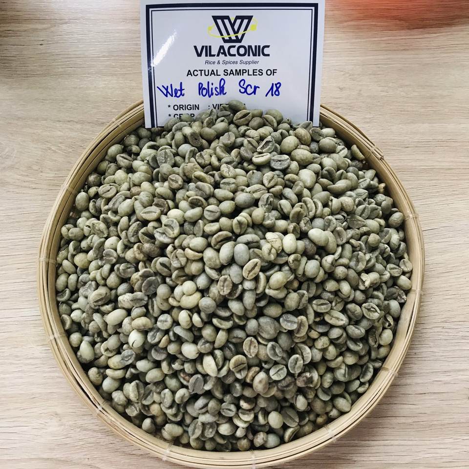 เมล็ดกาแฟโรบัสต้าสีเขียวแบบดิบจากเวียดนามราคาถูกร้านกาแฟคาฟฟี่เคฟี่ทำความสะอาดหน้าจอขัดเงาแบบเปียกขนาด13 16 16นิ้ว18เดือนในจัสตินโก