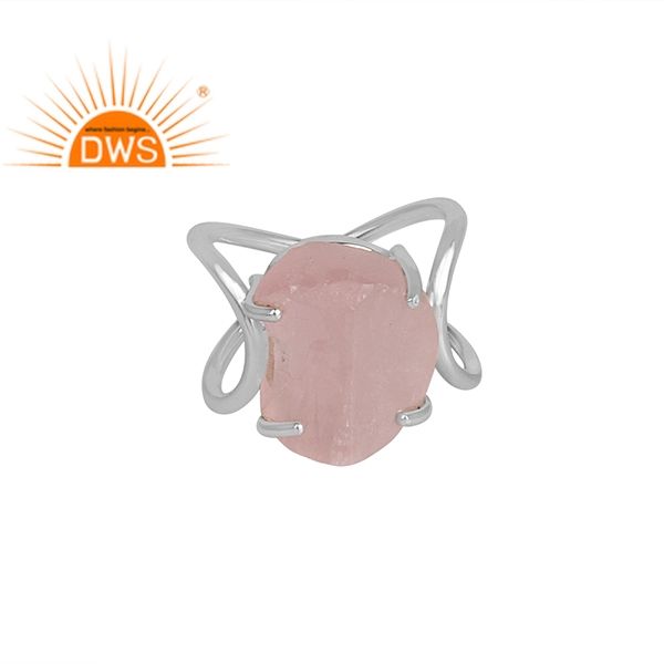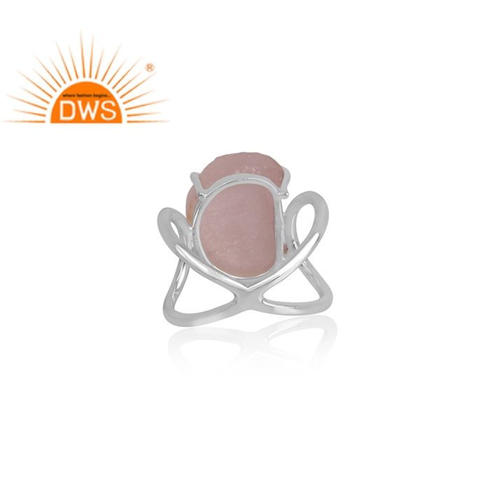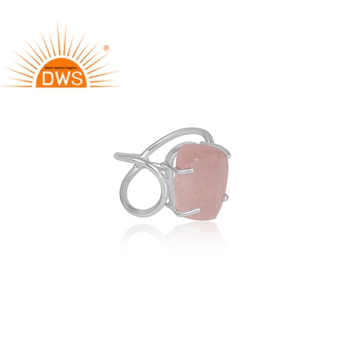 แหวนควอทซ์โรสดิบ,แหวนชุดเขี้ยวอัญมณีหยาบผู้ค้าส่งเครื่องประดับเงินแท้925ข้ามวงแหวนผู้จัดจำหน่าย