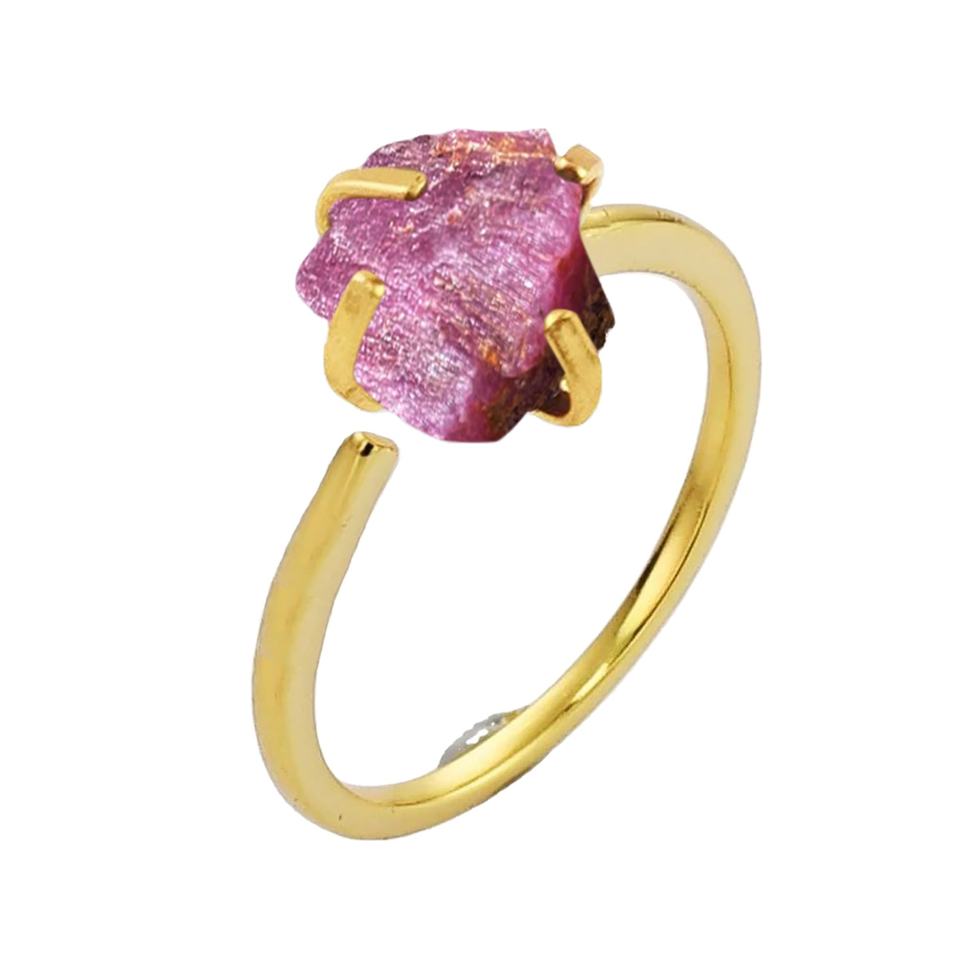 แหวนทับทิมดิบปรับขนาดได้ 8-10 มม. หินประจำเดือนเกิดธรรมชาติ เครื่องประดับทำมือ ขายส่งราคาถูก