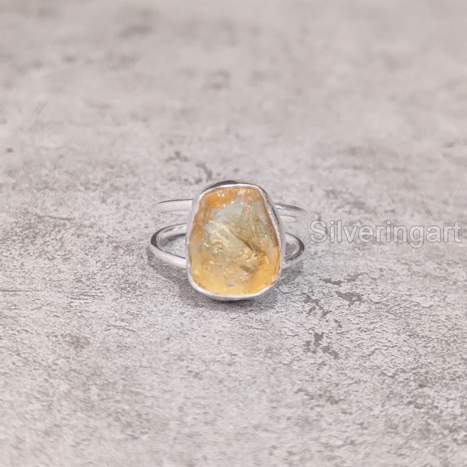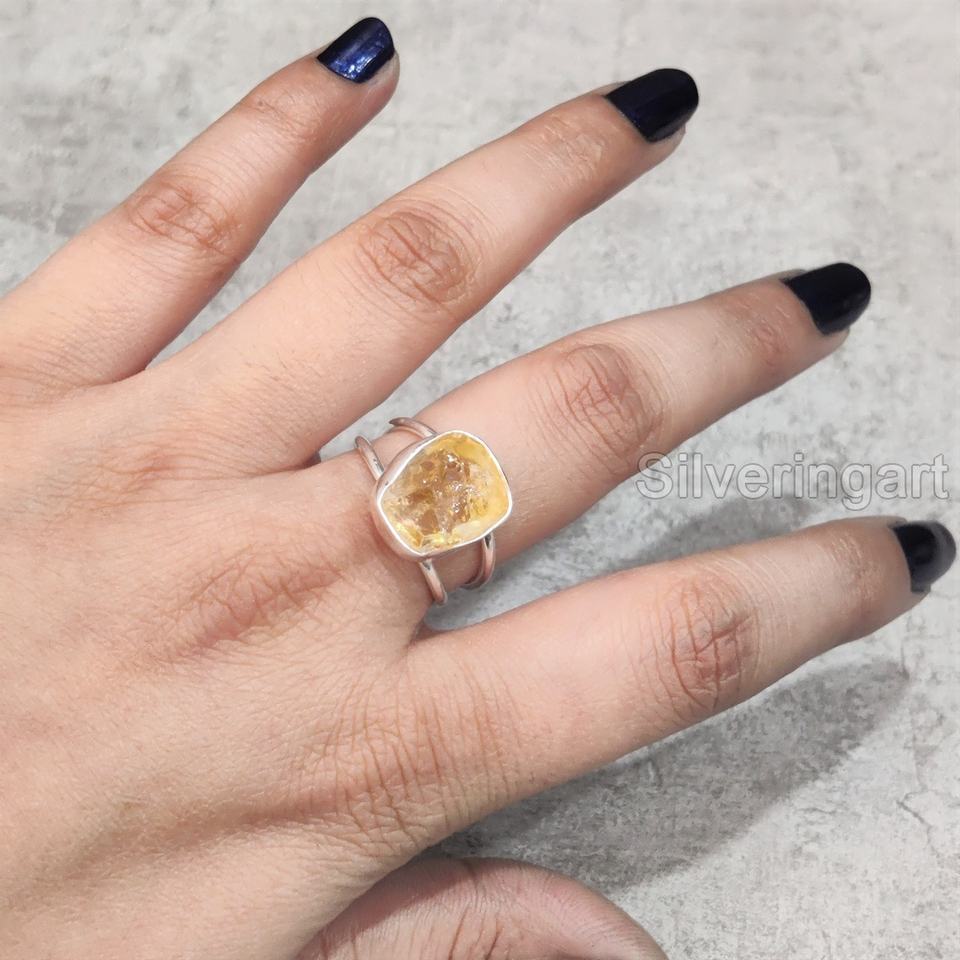 แหวนเงินแท้ 925 ประดับพลอยซิทรินดิบธรรมชาติ สำหรับผู้หญิง แหวนคู่ ดีไซน์เรียบง่าย ใช้เป็นเครื่องประดับประจำเดือนเกิดเดือนพฤศจิกายน