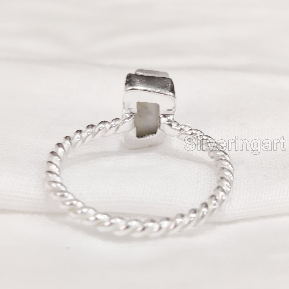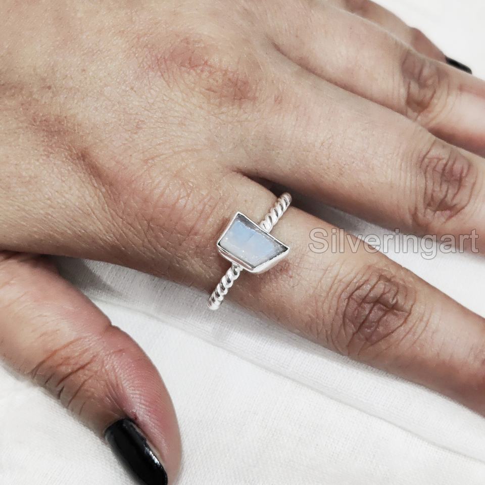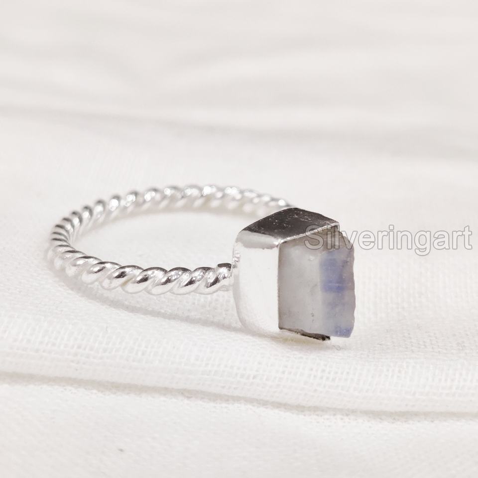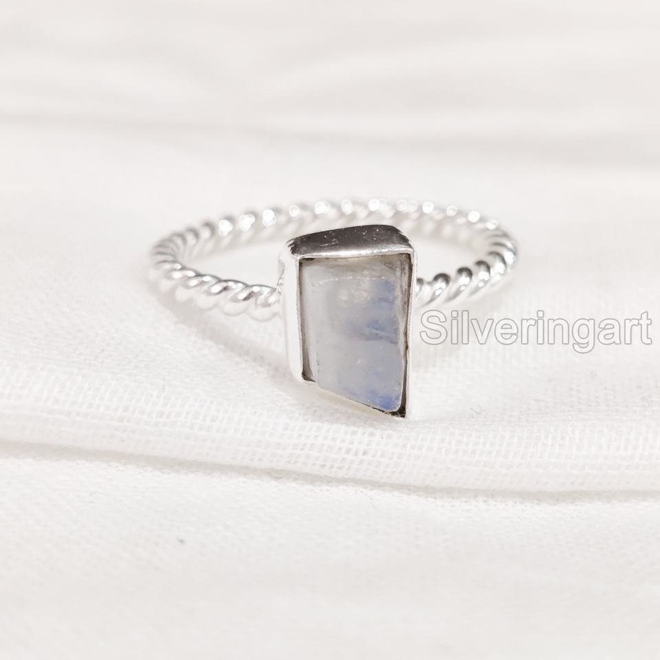 เครื่องประดับหินดิบสำหรับผู้หญิงแหวนพลอยมูนสโตนสีรุ้งธรรมชาติอัญมณีวงแหวนบิด925แหวนเงินสเตอร์ลิง