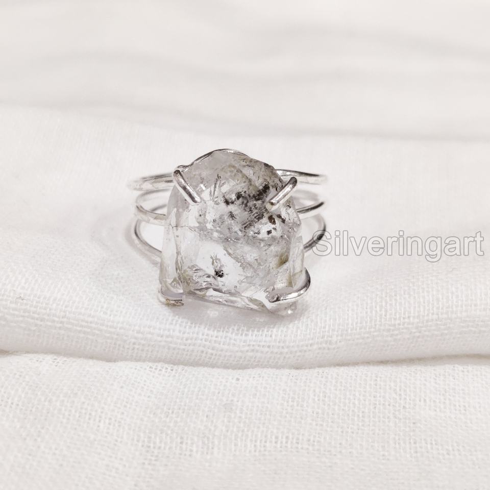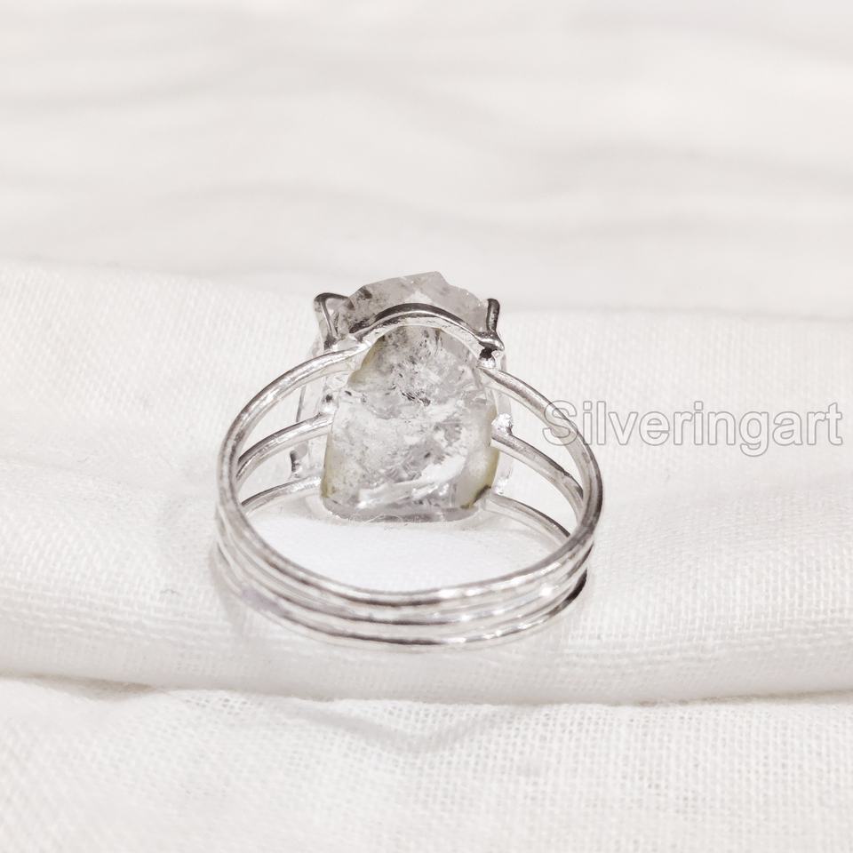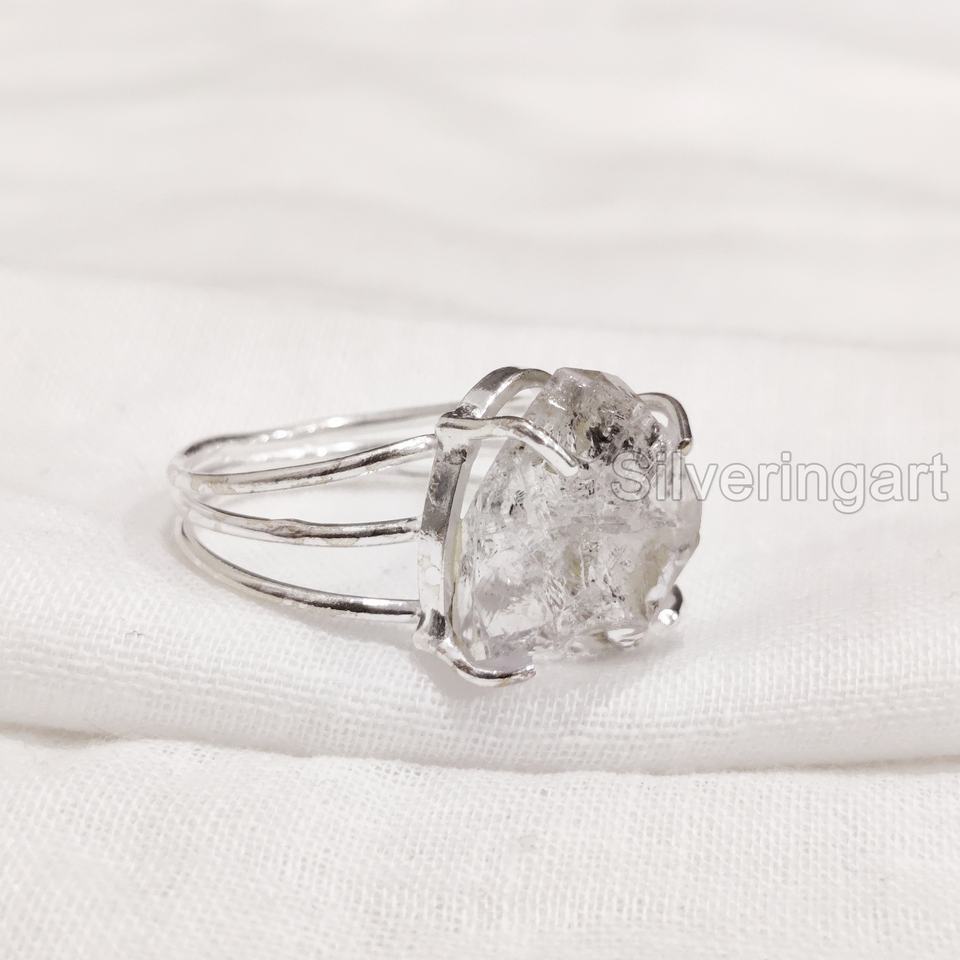 เครื่องประดับหินดิบแหวนผู้หญิงธรรมชาติหยาบเฮอร์กิเมอร์พลอยเพชรประจำเดือนเกิด3วงแหวนเงินสเตอร์ลิง925แต่งงาน