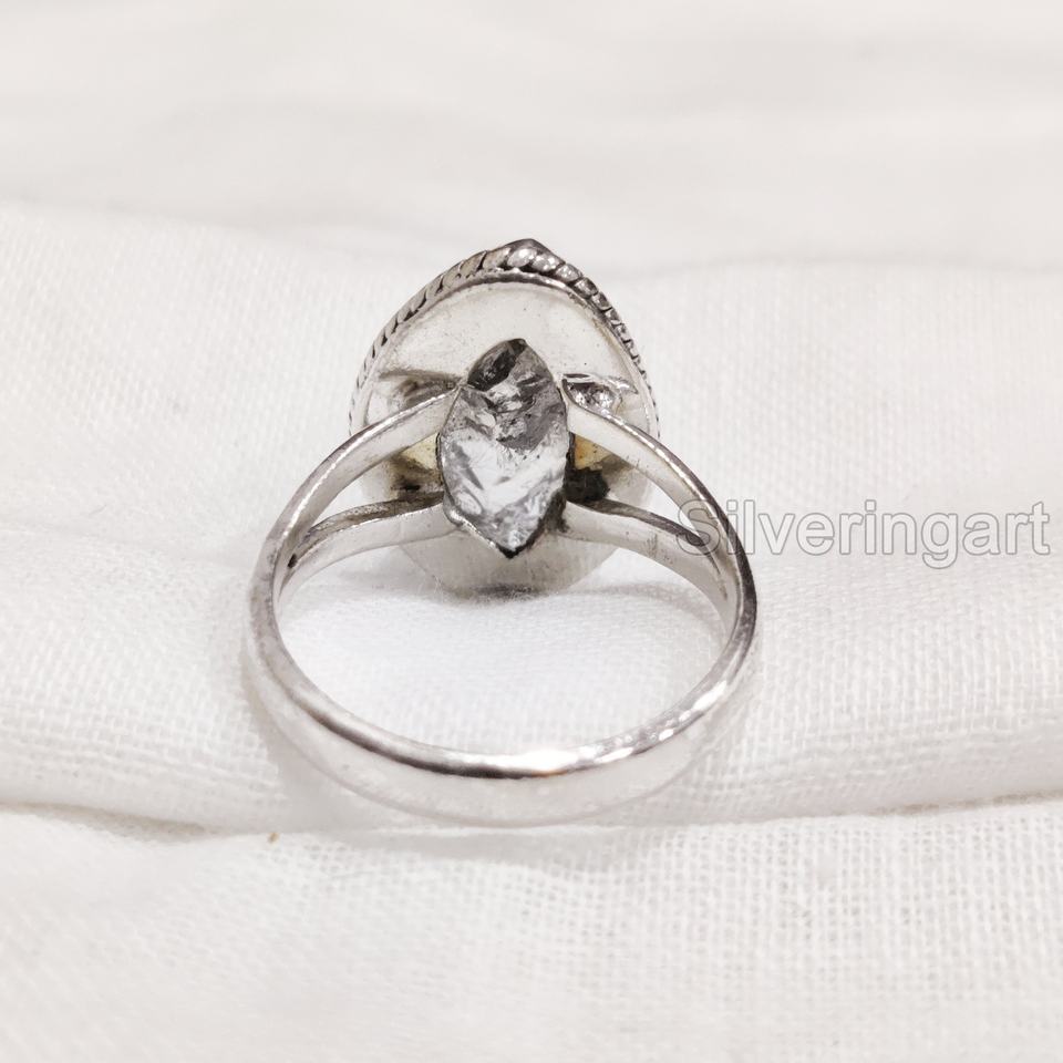 เครื่องประดับหินดิบแหวนสตรีแหวนเงินแท้ประดับเพชรพลอยอัญมณีโบฮีเมียน925คริสต์มาสแหวนเงินสเตอร์ลิง