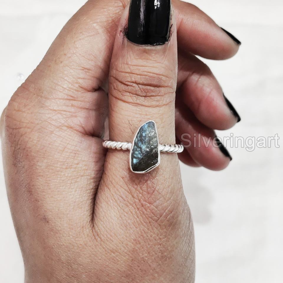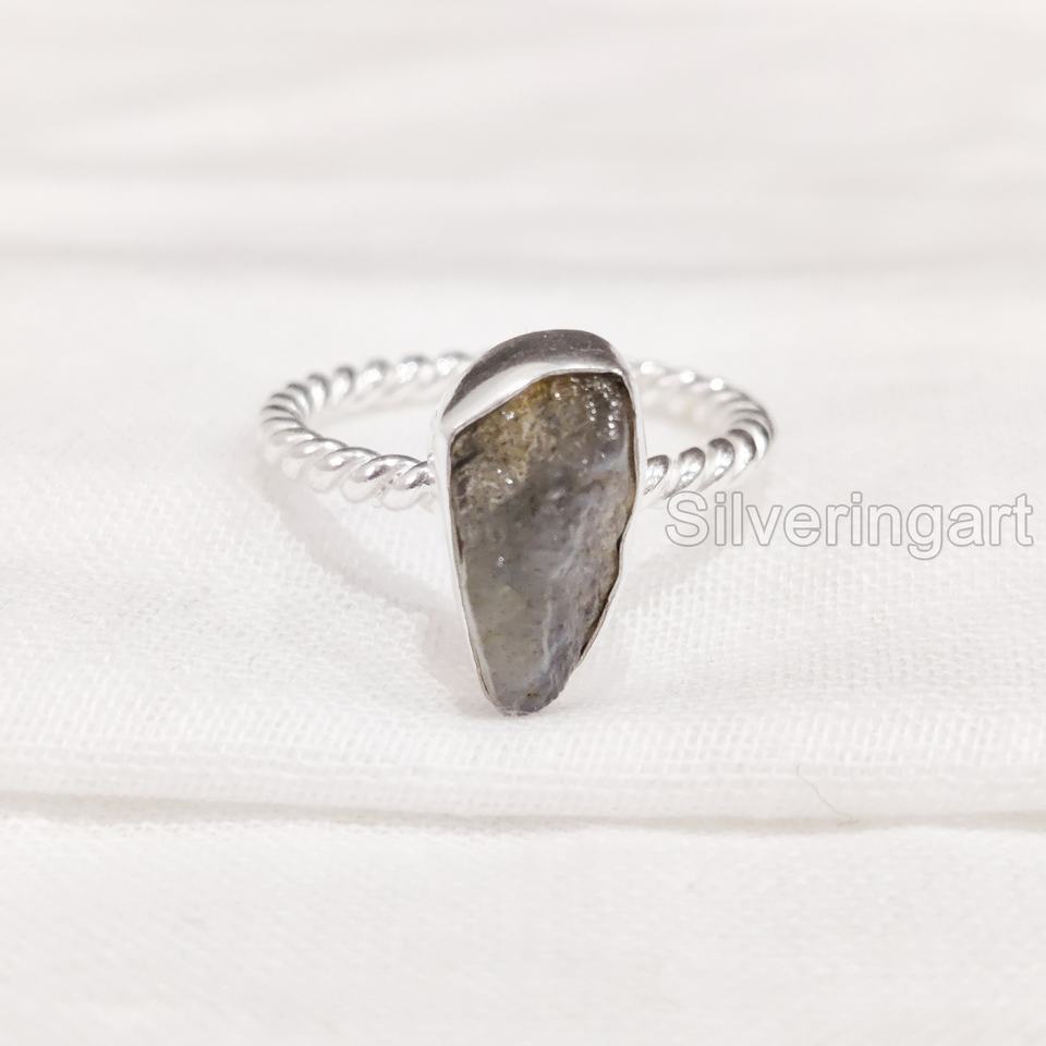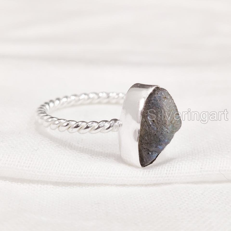 แหวนเงินแท้ 925 ประดับพลอยลาบราดอไรต์ดิบธรรมชาติ ดีไซน์เกลียวลวด สำหรับผู้หญิง เหมาะสำหรับงานปาร์ตี้และวันครบรอบ