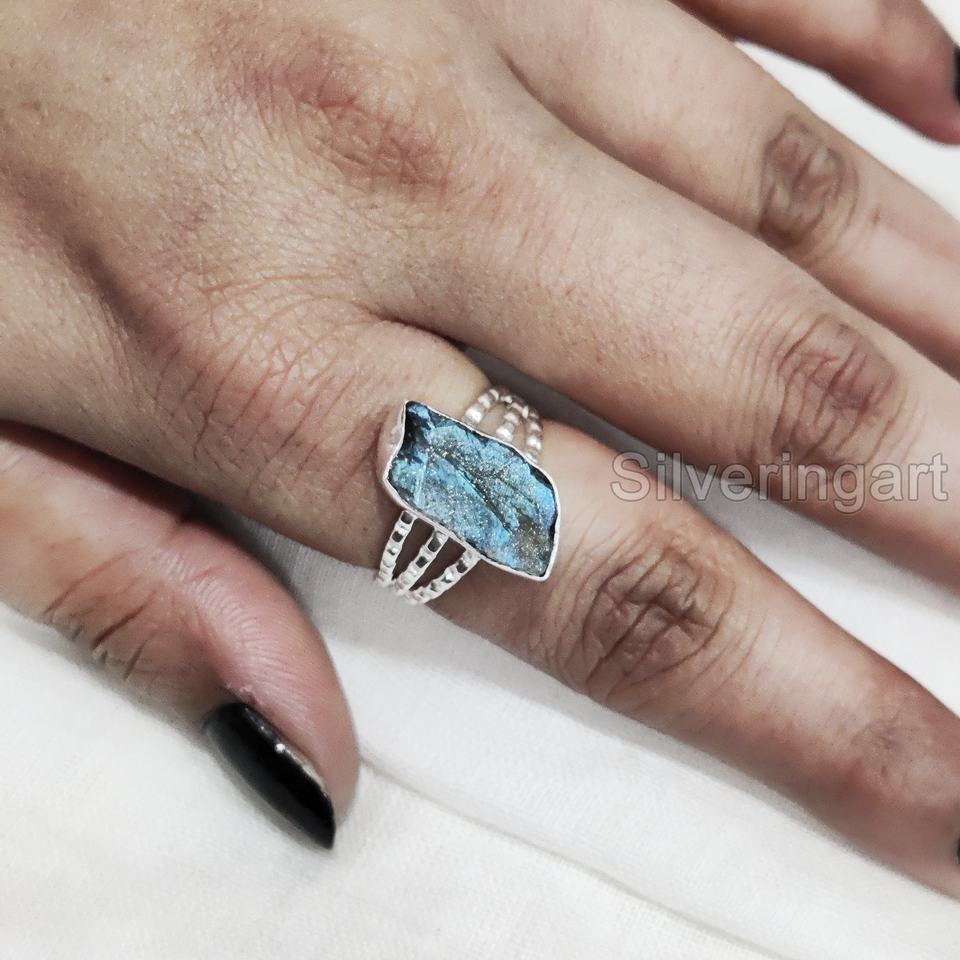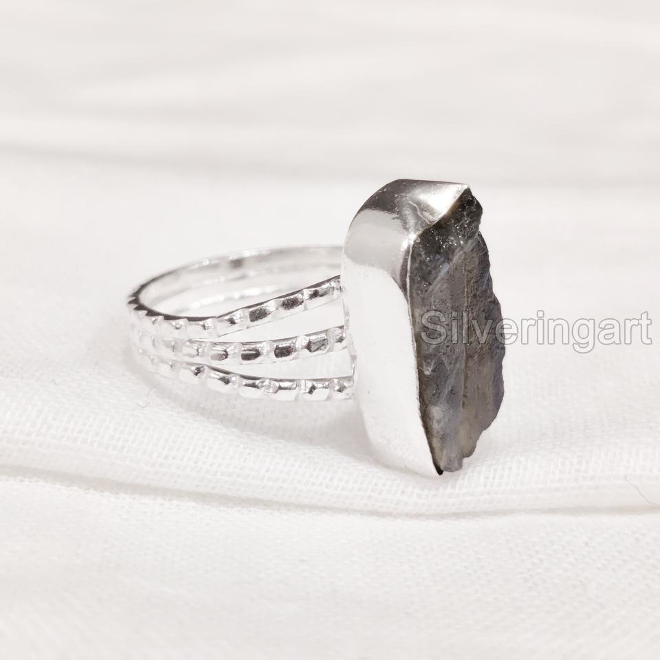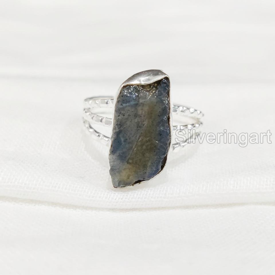 แหวนเงินแท้ 925 ประดับพลอยลาบราดอไรต์ดิบธรรมชาติ ปรับขนาดได้ สำหรับผู้หญิง เหมาะสำหรับงานปาร์ตี้และคริสต์มาส