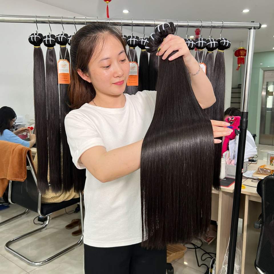 มัดผมตรงสีดำ2024ยังไม่ผ่านการแปรรูปผมมนุษย์100% กระดูกผมตรง12A