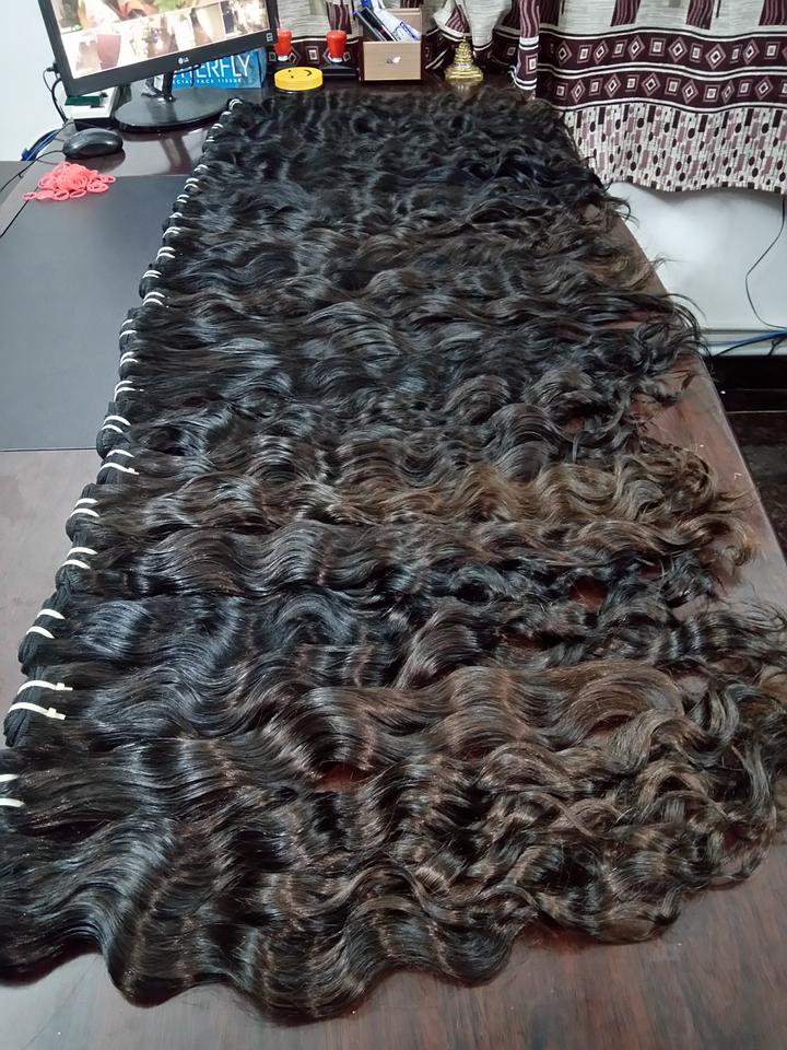 ผมชาวอินเดียแท้ยังไม่ผ่านการทำสารเคมีผมมนุษย์เป็นลอนแบบตรงตามธรรมชาติ