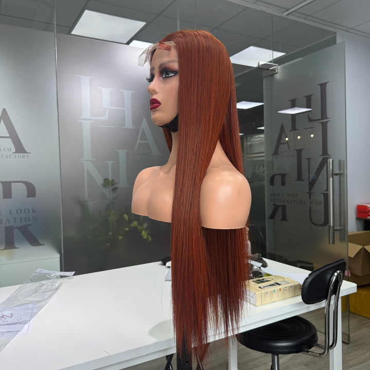 วิกผมดิบจากเวียดนามวิกผมแท้ติดลูกไม้ด้านหน้ามีความคมชัดระดับ HD วิกผมมนุษย์ติดหนังกำพร้าแบบไม่ใช้กาว13x4ส่วนหน้า