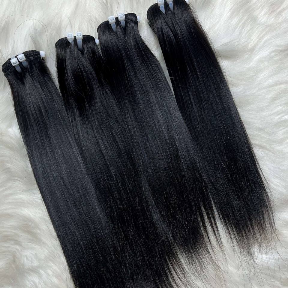 ผมตรงเนื้อนุ่มสีดำ100% เส้นผมมนุษย์ที่ยังไม่ผ่านกระบวนการทำหนังกำพร้า
