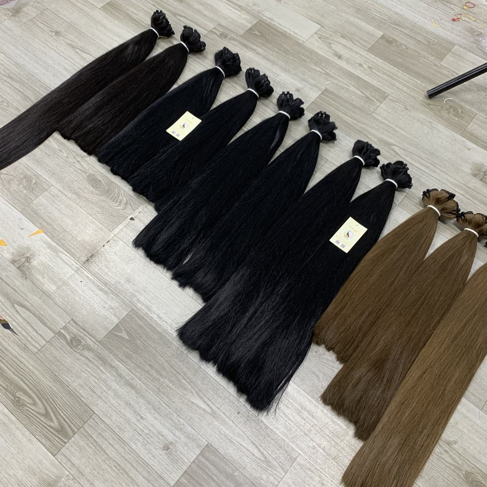 วิกผมคนเวียดนามแบบคู่ผมตรงสีดำน้ำตาลเข้มเรียงตามแนวเดียวกันผมต่อทอผ้าเวียดนาม