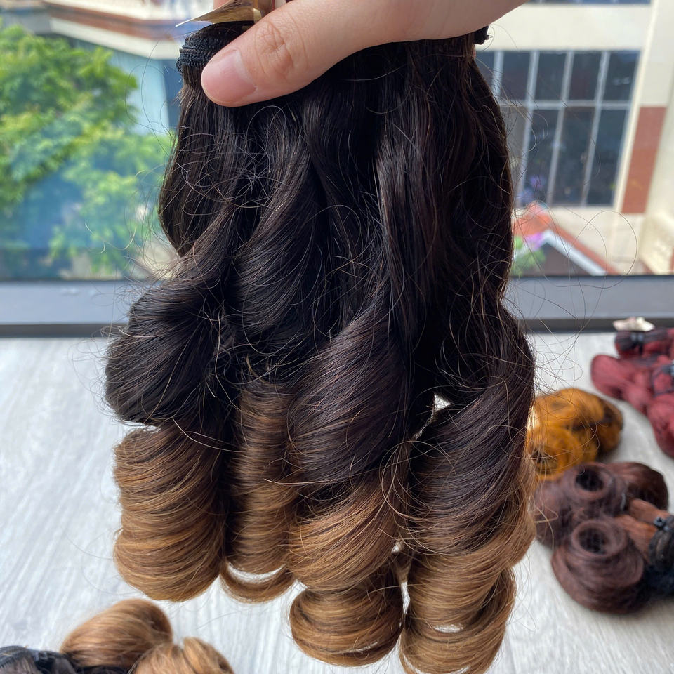 ผมต่อจากคนเวียดนามแบบดิบผมต่อแบบหยิกสีน้ำตาลไล่ระดับสำหรับผู้หญิงผลิตภัณฑ์ผมที่กำลังมาแรง