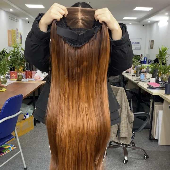 Raw Vietnamese Virgin Human Hair Wigs Yellowish Color Full Lace Styles Straight Wigs