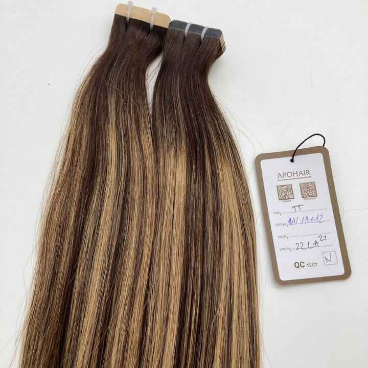 ผมต่อจากผมมนุษย์บริสุทธิ์เรมี่เวียดนามสุดหรู Apohair 1A balayage 1A + 12แบบเทปสีปกติ