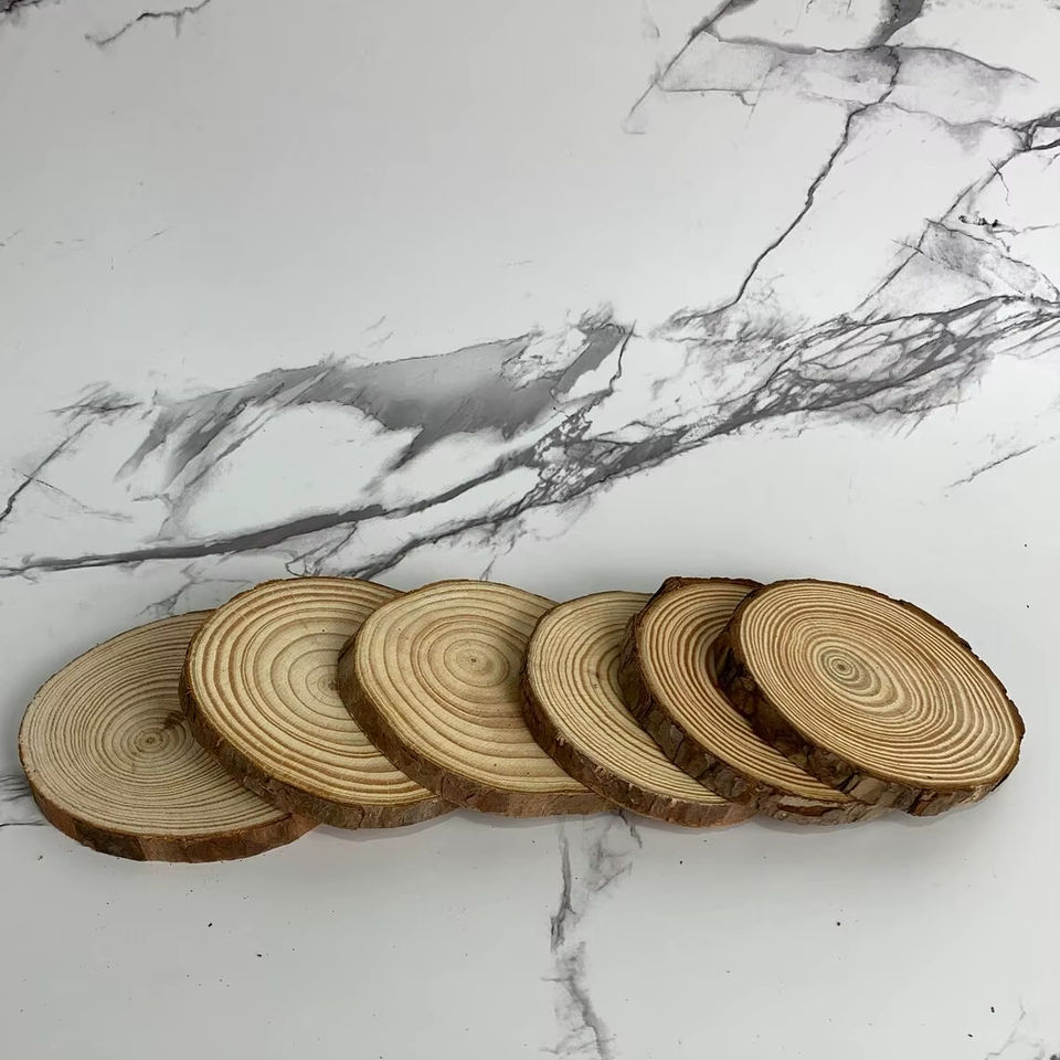 แผ่นรองแก้วไม้ดิบสไตล์งานแฮนด์เมดแนวชนบทสำหรับใช้ในบ้านโต๊ะดื่มกาแฟใช้ในสำนักงานและตกแต่ง