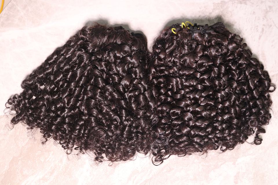 มัดผมพิกซี่สีธรรมชาติหยิกโดยผมคน100% (ผมดิบ) สีธรรมชาติที่มีคุณภาพพรีเมี่ยม (# 1B)