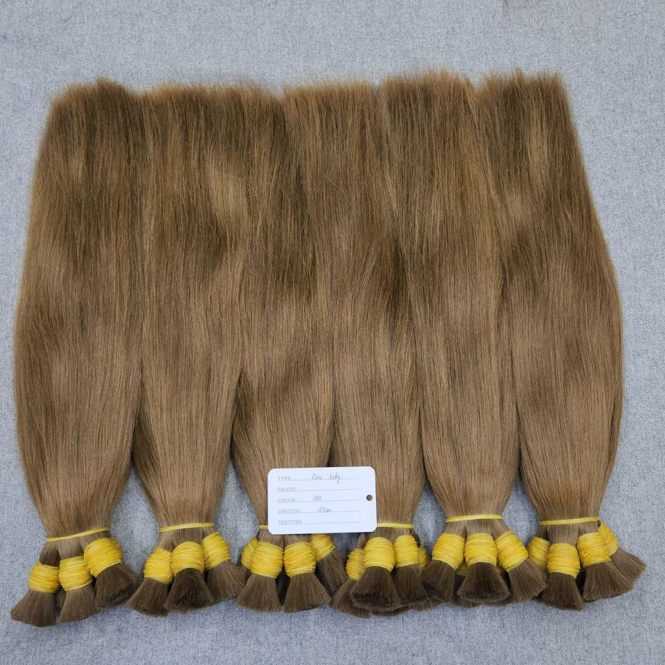 Raw unprocessed natural straight human bulk hair offered at wholesale volumes, favored by brands crafting upscale hair products