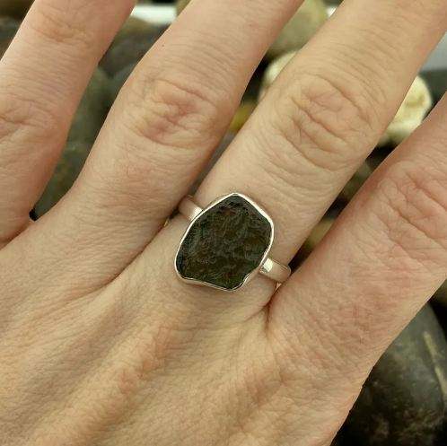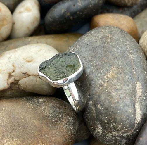 พลอย Rawgemstone moldavite 925ตั้งค่าเงินสเตอร์ลิงคริสเตียนได้รับการรับรองมาตรฐาน IEC ปาร์ตี้ครบรอบการหมั้นหมายของผู้หญิง