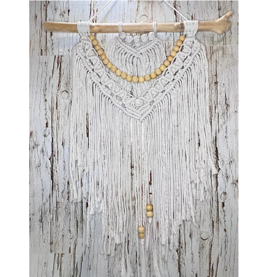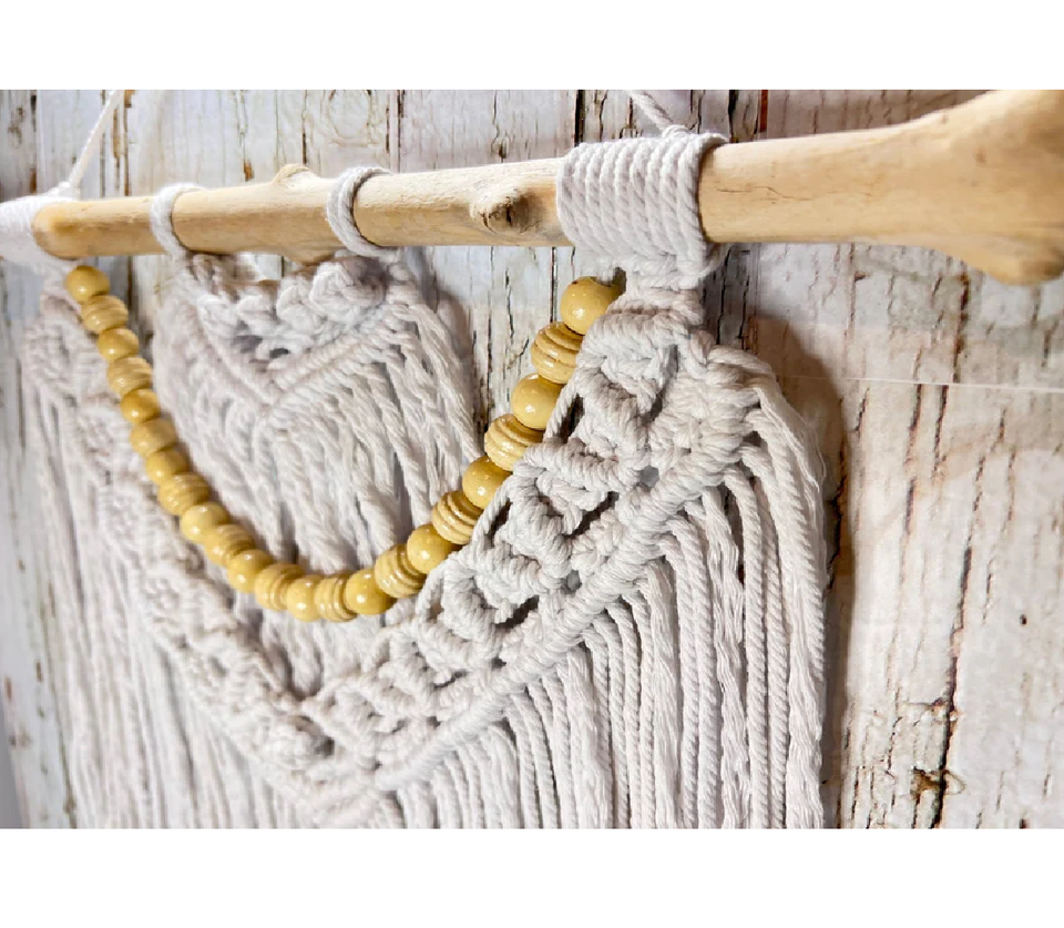 งานฝีมือมาคราเม่ผ้าฝ้ายสีขาวธรรมชาติจากเรยัน อินเตอร์เนชั่นแนล ดีไซน์ตามสั่ง ตกแต่งผนังสำหรับวันเกิด ของตกแต่งบ้าน