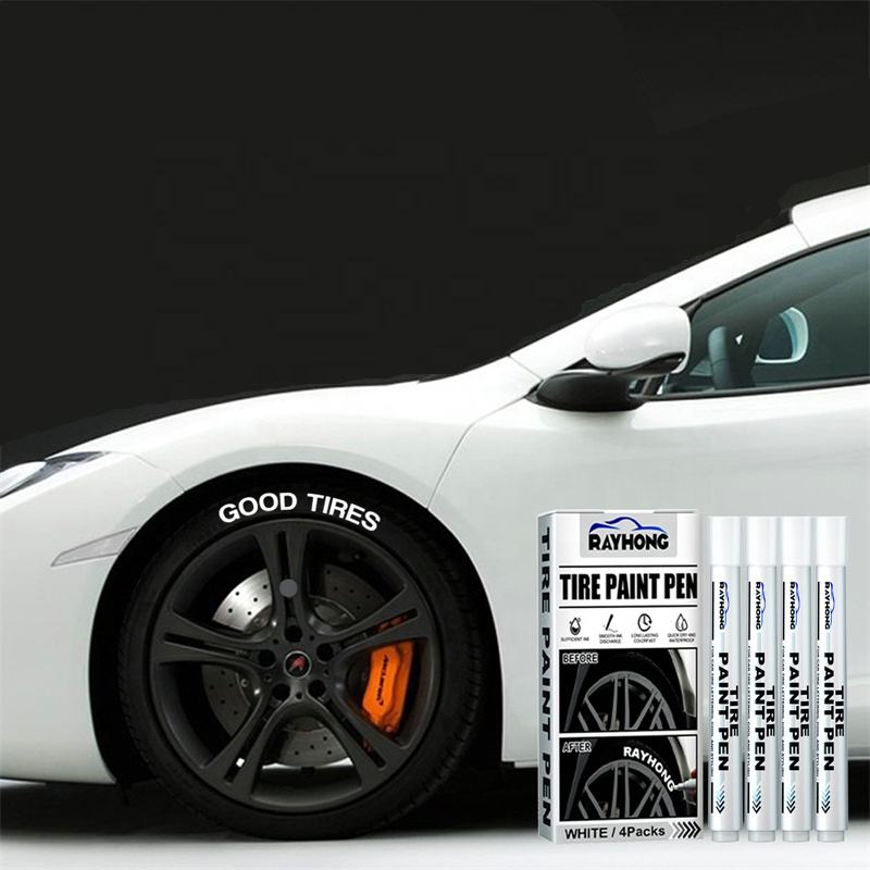 Rayhong ปากการะบายสียางรถยนต์รถจักรยานยนต์4ชิ้นปากการะบายสีบนกระจกกราฟฟิตี้ศิลปะลายเซ็นปากกาทำเครื่องหมายสีขาวยาง