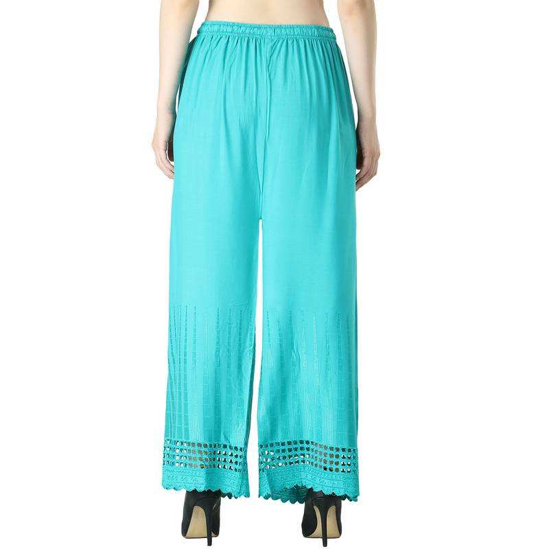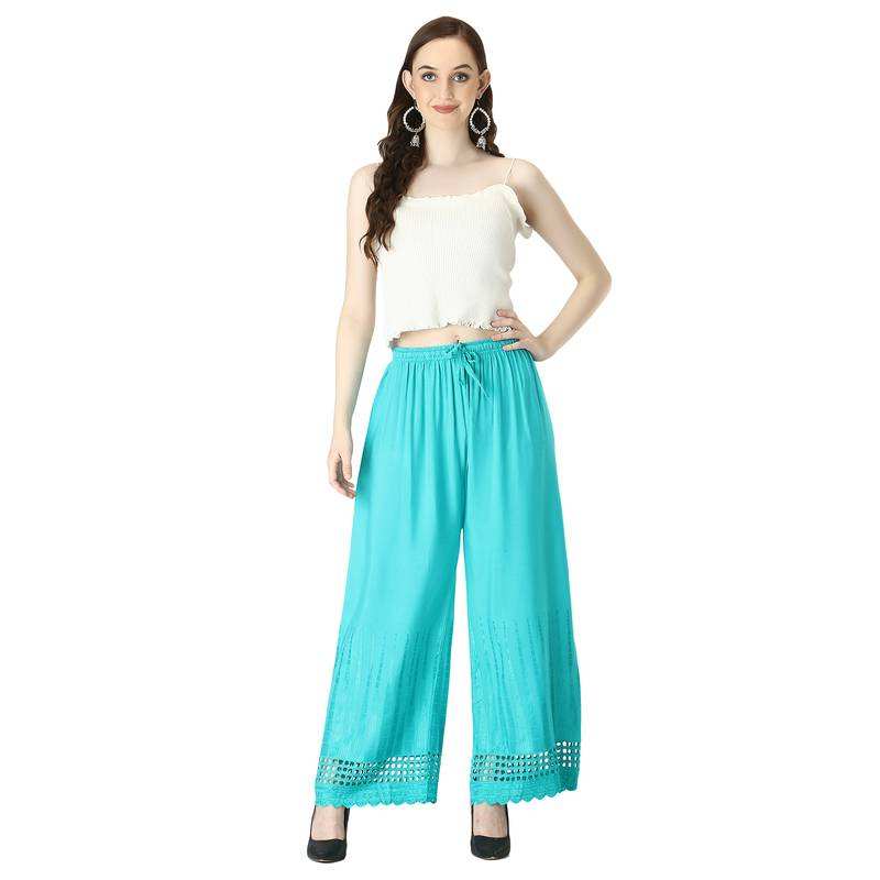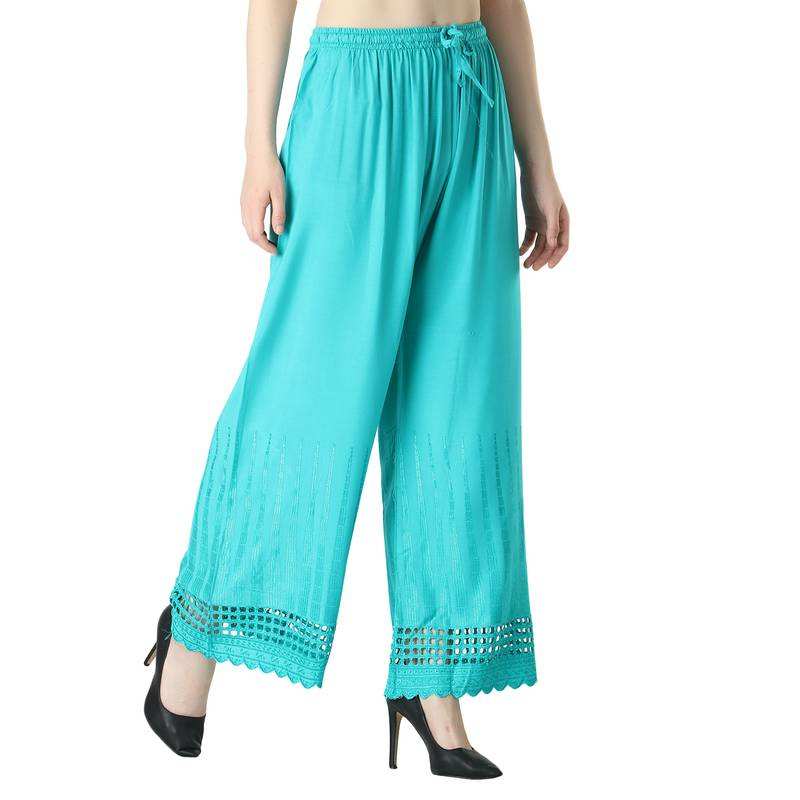 Rayon Palazzo กางเกงพลาสโซสำหรับผู้หญิงลำลองแบบเย็บ