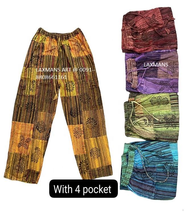 กางเกงฮาเร็มพิมพ์ลายเรยอนระบายอากาศได้ดีสำหรับฤดูร้อนชุดนอนแบบเย็บปะแบบอินเดียยาวเต็มตัวสำหรับทั้งชายและหญิง